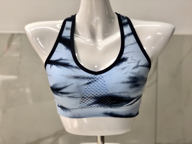2019新款无缝运动女工字短上衣扎染网孔带胸垫
