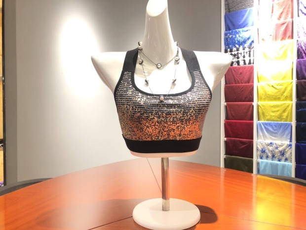 2019新款无缝条纹烫金胶印2粗肩带短上衣