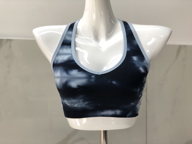 2019新款无缝运动短工字上衣扎染网孔带胸垫